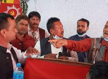 धरान: एमाले सुनसरीको दुवै कमिटीको संयुक्त बैठकको क्रममा बुधबार इटहरीका मेयर द्धारिकलाल चौधरीको कारण केहीबेर तनाव भएको छ । बैठक आफ्नो अध्यक्षतामा हुनुपर्ने भन्दै चौधरीले माइक खोसेर बोल्न खाजेका थिए । औपचारिक कार्यक्रम शुरुवात हुदा नै उनले कार्यक्रम सञ्चालक रहेका खेमराज पोख्रेलको माइक खासेर केही ...