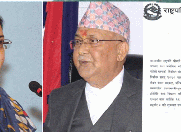 धरान: राष्ट्रपति विद्यादेवी भण्डारीले मन्त्रीपरिषदको सिफारिश अनुसार प्रतिनिधिसभा विघटन गर्दै चुनावको घोषणा गरेकी छिन् । राती करिब पौने २ बजे प्रनिनिधिसभा विघटन गर्दै आउदो कातिक २६ र मंसिर ३ गते चुनावको घोषणा गरेकी हुन् । संविधानको धारा ७६ (५) वमोजिम प्रधानमन्त्रीमा दाबी गरेका केपी शर्मा ओली र ...