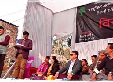 धरान: प्रतिनिधिसभा विघटनको विरोधमा देशव्यापी प्रर्दशन गर्ने क्रममा नेपाली कांग्रेसले धरानमा पनि विरोधसभा आयोजना गदैछ । विरोध सभाअघि धरानको छाताचोकबाट वृहतरुपम विरोध र्याली निस्किएको थियो । छाताचोकबाट शुरु भएको विरोध र्याली भानुचोक, माछाभौडी हुदै सिंहदेवी चेकमा पुगेर कोणसभामा परिणत भएको छ । कोणसभाला ...