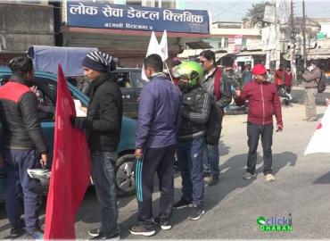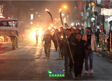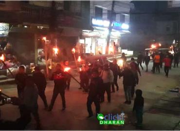 धरान: नेकपा प्रचण्ड-नेपाल समुहको बिहिबार आह्वान गरिएको आम अड्तालको पुर्वसन्ध्यामा आज बुधबार साँझ धरानमा मसाल जुलुस निकालिएको छ । प्रचण्ड-नेपाल समुहले आमहड्ताल सफल बनाउन धरानमा पनि मसाल जुलुस निकालेको हो । छाताचोकस्थित पार्टी कार्यालयबाट निस्केको जुलुस छाताचोक हुँदै भानुचोकमा पुगेर कोणसभामा परिणत भए ...