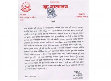 काठमाडौँ: सत्तारुढ दल नेकपाकै प्रचण्ड माधव समुहले बिहिबार आमहड्ताल आह्वान गरेपनि सरकारले भने ढुक्क भएर यातायात चलाउन, उद्योग धन्दा, व्यवसाय खोल्न आग्रह गरेको छ । गृहमन्त्रालयले बुधबार साँझ विज्ञप्ती जारी गर्दै उद्योग, व्यवसायमा कुनै वाधा, अवरोध हुन नदिने गरि सुरक्षा व्यवस्थाप मिलाइने जनाएको छ । मन् ...