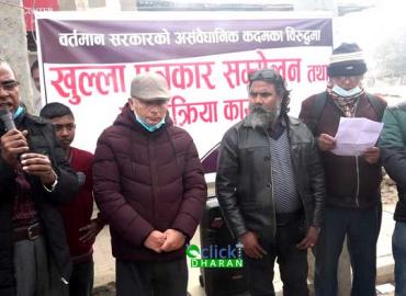 विराटनगरः संसद विघटनविरुद्ध विराटनगरका नागरिक समाज आन्दोलित भएको छ । राजनीतिकशास्त्री एवंम प्राध्यापक कृष्ण पोख्रलको संयोजकत्वमा ११० सदस्यीय प्रवुद्ध नागरिक समाज गठन गरिएको छ । उक्त समाजले आज विराटनगरमा सडक पत्रकार सम्मेलन गर्दै संसद विघटन असंवैधानिक भएकोले आन्दोलनमा उत्रनुपरेको जनाएको छ । प्राध्य ...