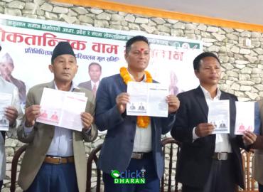 धरान: मंसिर ४ गतेको प्रतिनिधिसभा र प्रदेशसभा निर्वाचनको लागि लोकतान्त्रिक वाम गठनधनले सुनसरी क्षेत्र नं १ को चुनावी संकल्प पत्र सार्वजनिक गरेको छ । धरान १५ स्थित होटल धरान किचनमा शुक्रबार पत्रकार सम्मेलन गर्दै गठबन्धनले सुनसरी १ को चुनावी संकल्प पत्र सार्वजनिक गरेको हो । गठबन्धनबाट सुनसरी क्षेत्र १ ...