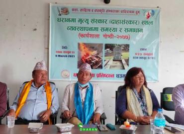 धरान: धरानमा मृत्यु संस्कार (दाहसंस्कार)स्थल व्यवस्थापन गर्नेबारे छलफल भएको छ । धरान प्रज्ञा प्रतिष्ठानको आयोजनामा शनिबार धरान ८ स्थित सभागृह हलमा दाह सँस्कारस्थल व्यवस्थापनको समस्या र समाधानबारे छलफल भएको हो । कार्यक्रमका प्रमुख अतिथि रहेका धरानका मेयर तिलक राईले शवलाई समाधिस्थ गर्ने जातिहरु र दाह ...
