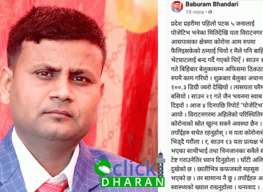 विराटनगर: विराटनगरका पत्रकार बाबुराम भण्डारीलाई पनि आज कोरोना संक्रमण पुष्टि भएको छ । पत्रकार भण्डारीले सामाजिक सञ्जाल फेसबुकबाट आफ्नो पिसिआर रिपोर्ट पोजेटिभ आएको सार्वजनिक गरेका हुन् । उनले अहिलेको अवस्थामा विराटनगरमा स्रोत खुल्न सक्ने अवस्था नरहेको भन्दै सबैलाई सचेत रहन आग्रह गरेका छन् । साथै, उन ...
