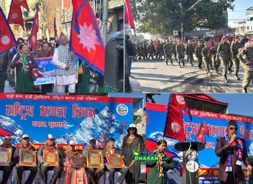 धरान: राष्ट्रिय झण्डा दिवसको अवसरमा आज (मंगलबार) बिहान धरानमा प्रभातफेरि, सांगीतिक कार्यक्रम तथा सम्मान कार्यक्रम भएको छ । शाक्यमुनि युवा समुहको आयोजनामा धरान उपमहानगरपालिका गेटबाट भानुचोक स्थित लोकतान्त्रिक चौतारी ट्याक्सी स्टेण्डसम्म प्रभातफेरि भएको थियो । लोकतान्त्रिक चौतारीमा सांगीतिक तथा स ...