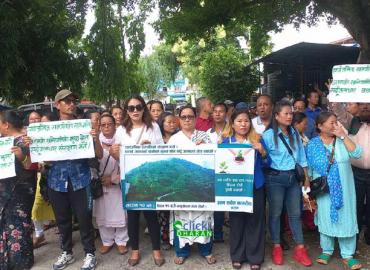 धरान: मुआब्जा पाएर पनि लगतकट्टा नगरिदा भुमाफियाको चंगुलमा परेर किनबेच भएको सर्दु जलाधार क्षेत्र जोगाउन माग गर्दै मेयर हर्क साम्पाङलाई ज्ञापन पत्र बुझाइएको छ । आम सचेत नागरिक धरानको नामबाट बुधबार र्याली निकाल्दै मेयर साम्पाङलाई ज्ञानपत्र समेत बुझाइएको हो । भानुचोकमा भेला भएर कोणसभा गरेपश्चात र्याली उ ...