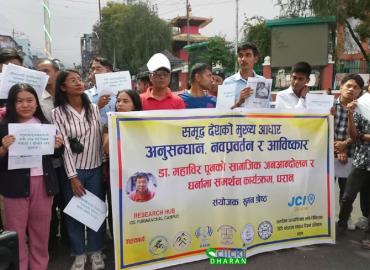 धरान: काठमाण्डौंमा आन्दोलन र धर्नामा बसिरहेका डा.महावीर पुनलाई समर्थन गर्दै धरानमा पनि प्रर्दशन भएको छ । डा.पुनले शुक्रबारदेखि माइतीघर सडकमा अनुसन्धान, नवप्रर्वतन र आविष्कारको लागि सामाजिक आन्दोलन र धर्ना कार्यक्रम जारी राखेका छन् । पुनको आन्दोलनलाई समर्थन तथा ऐक्यवद्धता जनाउदै धरानको भानुचोकम ...