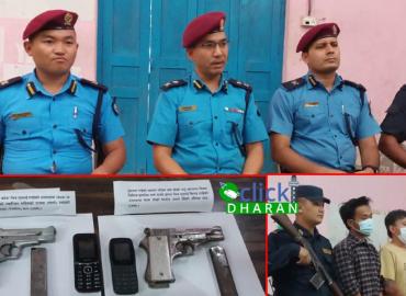 धरान: धरानस्थित दुई छुट्टाछुट्टै स्थानहरुबाट २ थान पेस्तोलसहित ३ जनालाई प्रहरीले पक्राउ गरेको छ । पक्राउ पर्नेमा धरान उपमहानगरपालिका १७ डाँडा घोपाका २९ बर्षीय हुकमेन जिमी, उनका भाई पर्ने २४ बर्षीय दिपक जिमी र धरान १५ का २४ बर्षीय रोहित राई रहेका छन । बिशेष सुचनाको आधारमा बैशाख ३१ गते राती ईलाका ...
