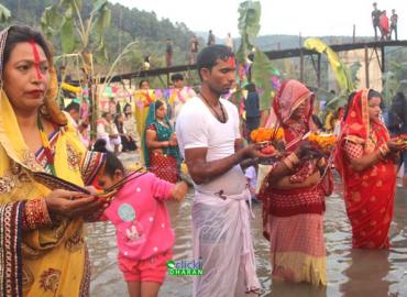 धरान: सूर्यको उपासाना गरि मनाइने छठ पर्वको धरानमा पनि रौनक छाएको छ । धरानका दुई ठूला नदी सर्दु र सेउती खोलामा श्रद्धालुहरुको घुँइचो लागेको छ । छठका ब्रतालुहरुसँगै रमिता हेर्नेहरुको पनि उस्तै भिड लागेको छ । आज छठ पर्वको मुख्य दिन हो । आज साँझ ब्रतालुहरुले अस्ताउँदो सूर्यलाई अर्घ्य दिएका छन् भने ...