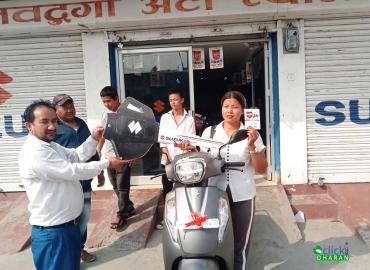 धरान: नयाँ बर्षको अवसरमा स्कटर खरिद गर्ने योजना बनाएर सुनसरीको बराहक्षेत्र ८ चक्रघट्टीबाट गीता तामाङ शनिवार धरानको नवदुर्गा अटो प्यालेस आइन् । जिल्ला ट्राफिक प्रहरी कार्यालयसँगै रहेको नवदुर्गा अटो प्यालेस धरानमा सुजुकी मोटरसाइकल र स्कुटरको आधिकारिक बिक्रेता हो । स्कुटर किन्ने आएकी गीताले नयाँ ...
