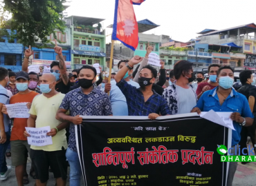 धरान: धरान उपमहानगरपालिकाको सिफारिशमा जिल्ला प्रशासन कार्यालय सुनसरीले भदौ ४ गतेदेखि १३ गतेसम्म लकडाउन गर्ने निर्णय गरेको छ ।यो निर्णयप्रति उद्योगी, व्यवसायीहरु मात्र होइन, दैनिकरुपमा गुजारा गर्ने मजदुरहरु पनि असन्तुष्ट छन् । लकडाउनप्रतिको असन्तुष्टी सामाजिक सञ्जालमा मात्र सिमित भएन, बुधबार दिउँसो ध ...