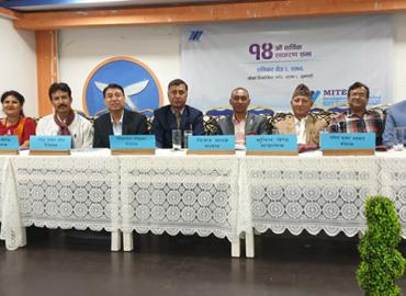 धरान: कोरोना भाइरस(कोभिड १९) को जोखिमप्रति उच्च सतर्कता अपनाउदै मितेरी डेभलपमेन्ट बैंकले आफ्नो साधारणसभा सम्पन्न गरेको छ । सरकारको निर्णयको पालना गर्दै बैंकले २५ जना भन्दा कम सेयर धनी सदस्यहरुको उपस्थितिमा शनिबार १४ औं बार्षिक साधारणसभा सम्पन्न गरेको हो । धरान मुख्य कार्यालय रहेको बैंकले गोर्खा डिप ...