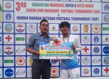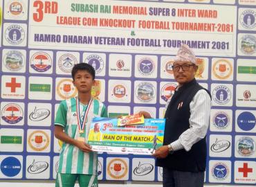 धरान: तेस्रो सुवास राई स्मृति सुपर ८ फुटबल प्रतियोगितामा आइतबार वडा १७ र वडा १४ बिचको फाइनल खेल रोचक बन्यो ।धरान १६ स्थित रंगशालामा भएको फाइनल खेलको निर्णयविहिन भएको छ । निर्धारित समयको खेल गोलरहित बराबरीमा सकिए पछि खेल टाइब्रेकरमा पुगेको थियो । टाईब्रेकरमा पनि ४-४ गोल भएपछि खेल सडन डेथमा पुग्यो । स ...