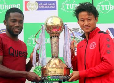 धरान: २३ औं बुढासुब्बा टुबोर्ग गोल्डकप फुटबल प्रतियोगितामा क्यामरुनको एभेनियर एफसि च्याम्पियन भएको छ । धरान १६ स्थित रंगशालामा शनिबार भएको फाइनल खेलमा काकडभिट्टा फुटबल ट्रेनिङ सेन्टर (केएफटिसि), झापालाई १–० ले पराजित गर्दै क्यामरुनी क्लब च्याम्पियन भएको हो । पहिलो हाफ गोलरहित बराबरीमा टुंगिए प ...