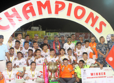 विराटनगरः विराट गोल्डकपको छैठौं संस्करणमा विभागिय टिम सशस्त्र प्रहरी (एपीएफ) काठमाण्डौं च्याम्पियन भएको छ । विराटनगरस्थित सहिद मैदानमा शनिबार सम्पन्न गोल्डकपको फाइनलमा पाहुना टोली भारतको पंजाव पुलिसलाई १– ० ले हराउँदै एपीएफ च्याम्पियन भएको हो । जितसँगै एपीएफले १५ लाख १५ हजार र ...