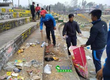 धरान: २१ औं गोधुली कप शनिबार सम्पन्न भएपछि आयोजक गोधुली कपले दुई दिन लगाएर रंगशालाको सफाई गरेको छ । क्लबको अगुवाईमा सदस्य तथा खेलाडीहरुले आइतबार(हिजो) र आज सोमबार रंगशालामा सरसफाई गरेको हो । क्लबका सदस्यहरु, खेलाडीहरुले श्रमदान गरेर फोहोरमैला संकलन गरेका थिए । आइतबार नै अधिकांश फोहोर संकल ...