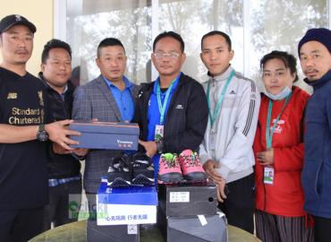 धरान: प्रभु बैंक धरान १० के रन ८ औ नेवा च्यारटीलाई गोर्खा ब्लड हङकङले सहयोग गरेको छ । सोमबार एक कार्यक्रम गरी गोर्खा ब्लडले १० हजार बराबरको १२ जोर जुत्ता र मोजा सहयोग प्रदान गरेको हो । धरान १८, शिवमार्गस्थित झुनाज फिटनेसमा गोर्खा ब्लडका सदस्य प्रभात राई र धरान उपमहानगरपालिका वडा १८ का अध्यक्ष प्रवि ...
