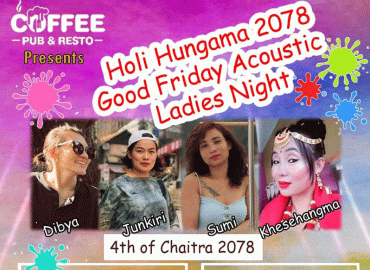 धरान: होली पर्वको अवसरमा धरान १० स्थित कफि पव एण्ड रेष्टोमा होली हङ्गगामा लेडिज नाइट हुने भएको छ । कफि पवले शुक्रवार साँझ होली पर्वको अवसरमा चार जना महिला कलाकारहरुको एक साथ प्रस्तुती सहित होली हङ्गामा कार्यक्रम गर्न लागेको हो । शुक्रवार साँझ हुने सांगीतिक कार्यक्रममा धरानकी खेसेहाङ्गमा लिम्वु, ...