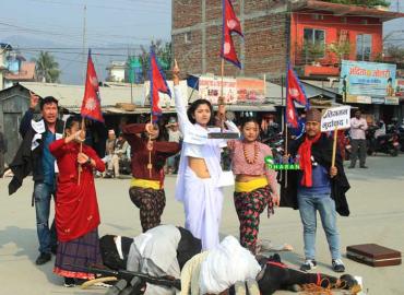 धरान: युवा कलाकारहरुले स्थापना गरेको रंगभुमी एकेडेमीले धरानको चोकहरुमा मौन नाटक प्रतिगमन मञ्चन गर्न शुरु गरेको छ । पुष ५ गते प्रतिनिधिसभा विघटन र चुनावको मिति घोषणा गरिएपछि उत्पन्न राजनीतिक परिस्थितिलाई समेटेर रंगभुमीले नाटक प्रतिगमन मञ्चन गर्न थालेको हो । नाटकले प्रधानमन्त्री केपी शर्मा ओलीले प्रत ...