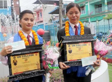 धरानः युएन,नवोदय कलेज धरान–१६ ले बिएचएममा प्रदेश १ को ‘सेकेण्ड टपर’ र ‘धरान टपर’ बनेका आफ्ना विद्यार्थीलाई नगदसहित सम्मान गरेको छ । कलेजले शनिबार एक कार्यक्रम आयोजना गरि अभिभावकहरुको उपस्थितिमा विद्यार्थीहरुलाई सम्मान गरेको हो । त्रिभुवन विश्वविद्यालयद्वारा सञ्चालित बिएचएमको फस्ट सेमेष्टर र तेस ...
