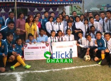 धरान: फुटवल के को लागि खेलिन्छ ? जितेर ट्रफी, मेडल पाउन । तर खेल यतिमा मात्र सिमित हुदैन । फुटबल खेलेरै पनि समाजको लागि सहयोग जुटाउन सकिने रहेछ । यसको उदाहरण आज धरानमा भएको मैत्रीपुर्ण फुटबल खेल नै काफी छ । धरान १६ स्थित रंगशालामा एफसि गोर्खा भेट्रान युके र धरान भेट्रान फुटबल क्लबबीच आज शनिबार मैत् ...
