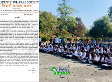 धरान: वीपी कोइराला स्वास्थ्य विज्ञान प्रतिष्ठान धरानका विद्यार्थीहरुले आफ्नो भविष्यमाथि लापरवाही भएको गुनासो गरेका छन् । प्रतिष्ठानस्थित विद्यार्थी कल्याण समाजका अध्यक्ष डा.ओम शान्ति रजकले शनिबार प्रेस विज्ञप्ती जारी गर्दै विद्यार्थीहरुले संविधानप्रदत अधिकारको लागि आवाज उठाइरहदासमेत सम्बन्धित न ...