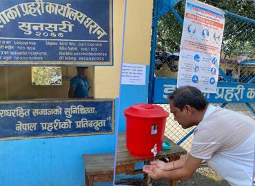 धरान: कोरोना भाइरस(कोभिड १९)को संक्रमणबाट जोगिन इलाका प्रहरी कार्यालय धरानले प्रवेश द्धारमा साबुन पानीको व्यवस्था गरेको छ । सबैले साबुन पानीले राम्रोसँग हात धोएपछि मात्र प्रहरी कार्यालय प्रवेश गर्न पाउछन् । कोरोना संक्रमण फैलिनसक्ने जोखिम भएकोले सेवाग्राहीहरुलाई हात धोएपछि मात्र कार्यालय प्रवेश गर् ...
