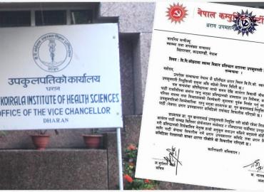 धरान: वीपी कोइराला स्वास्थ्य विज्ञान प्रतिष्ठान धरानको रिक्त रहेको उपकुलपति नियुक्तीको प्रक्रिया पारदर्शी हुनुपर्ने माग गरिएको छ । प्रतिष्ठानस्थित चिकित्सा तथा दन्त चिकित्सा शिक्षक कल्याण समाजले एक प्रेश विज्ञप्ती जारी गर्दै छनौट प्रक्रिया पारदर्शी गर्न सरकारसँग माग गरेको छ । उपकुलपति नियुक्तीको ला ...