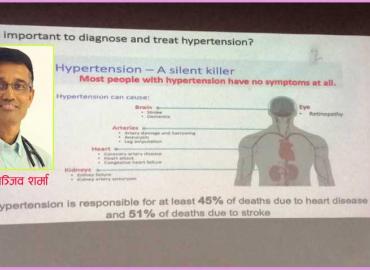 मे १ देखि ३० सम्म विश्वका १०० भन्दा बढी मुलुकमा 'मे मेजरमेन्ट मन्थ' मनाइन्छ । यसको मुख्य उद्देश्य भनेको उच्च रक्तचापबारे बुझाउने हो । जसलाई उच्च रक्तचाप छ, उहाँहरुलाई उपचार गर्ने हो । जसलाई रक्तचाप छ वा छैन, उनीहरुलाई स्वास्थ्य जीवनशैली कसरी बाँच्ने भनेर उत्प्रेरित गर्ने हो । छ भने प्रेसर छ भने कसरी ...