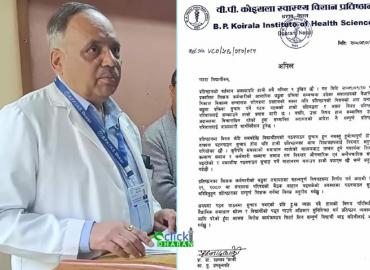 धरान: वीपी कोइराला स्वास्थ्य विज्ञान प्रतिष्ठान धरानका पुर्वरेक्टर एवं हाडजोर्नी बिशेष प्रा.डा.गुरु खनालले आफ्नो एसएलसी फेल र बिहारको नक्कली सर्टिफिकेट भन्दै प्रकाशित समाचारको खण्डन गर्दै चरित्र हत्या गरेको बताएका छन् । उनले त्यसविरुद्ध साइबर ब्युरोमा उजुरी दिएर कानुनी प्रक्रियामा गएको पनि बताएका छन ...