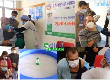 धरान: कोरोनाविरुद्धको खोप अभियानअन्र्तगत चार दिनसम्म धरानमा १२ सय भन्दा बढीले कोभिसिल्ड खोप लगाएका छन् । वीपी कोइराला स्वास्थ्य विज्ञान प्रतिष्ठान धरान र विजयपुर हस्पिटलमा रहेको खोप केन्द्रबाट १ हजार २ सय ८६ जनाले खोप लगाएका हुन् । ती मध्ये वीपी प्रतिष्ठानमा शनिबारसम्म ९ सय १६ जनाले खोप लगाएका छन् ...