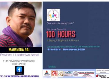 धरान: नेपालका कलाकारहरुले विश्व रेकर्ड बनाउन आइतबारदेखि एक सय घण्टा रिले लाइभ आर्ट डेमोष्ट्रेसन गर्ने भएका छन् । यसअघिको विश्व रेकर्ड तोडेर नयाँ इतिहास रच्ने लक्ष्यका साथ नेपालका ७२ जना कलाकारहरुले रिले लाइभ आर्ट डेमोष्ट्रेसन गर्ने भएका हुन् । इन्टरनेशनल वाटरकलर सोसाइटी(आइ.डब्ल्यु.एस.) नेपाल शाखाको ...