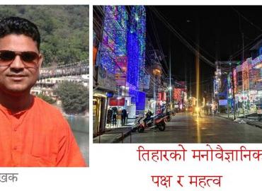 बिश्वब्यापी रुपमा फैलिएको कोरोना भाईसरको असर शारीरिक तथा मानसिक स्बास्थ्यमा मात्र होइन आर्थिक, सामाजिक, धार्मिक, सांस्कृतिक, चाडपर्व, रहनसहन लगायतका प्राय सबै क्षेत्रमा परेको छ। कोरोना संक्रमणका कारण यस बर्षको तिहार पनि खुलेर हर्षोल्लासका साथ मनाउन सकिरहेका छैनौ । तर यो विषम परिस्थितिमा पनि हामीले ...