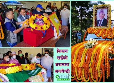 धरान: एक साताअघि खोटाङमा भीरबाट खसेर मृत्यु भएका पत्रकार एवं सामाजिक व्यक्तित्व किसन राईको गृहनगर धरानमा अन्त्येष्टी गरिएको छ । उनको जातीय परम्परा अनुसार आज शनिबार दिउँसो धरान १५ स्थित साकेला पार्क क्षेत्रमा अन्त्येष्टी गरिएको हो । उनको आजै वीपी प्रतिष्ठानमा पोष्टमार्टम गरिएको थियो भने अन्त्येष ...