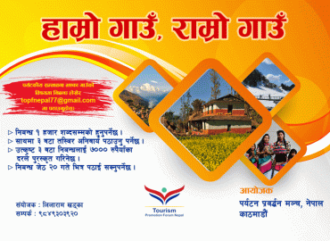 काठमाण्डौं: लकडाउनमा घरभित्रै बसिरहेका बेला आफ्नो गाउँको विषयमा निबन्ध लेखेर पुरस्कार जित्ने मौका आएको छ । त्यसका लागि ‘पर्यटन प्रर्वद्धन मञ्च, नेपाल’ले ‘हाम्रो गाउँ, राम्रो गाउँ’ निबन्ध लेखन प्रतियोगिता आयोजना गरेको हो । मञ्चका संयोजक लिलाराम खड्काका अनुसार जुनसुकै उमेर समू ...