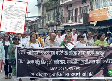 धरान: खानेपानी व्यवस्थापन बोर्डले महशुल अत्यधिक वृद्धि गरेको विरोधमा धरानका १० राजनीतिक दलहरु सडकमा आन्दोलित भएका छन् ।संयुक्त संघर्ष समिति गठन गरेका १० राजनीतिक दलहरुले आइतबार विरोध र्याली निकालेको थियो । धरान १ स्थित सिंहदेवी चोकबाट शुरु भएको विरोध र्याली खानेपानी बोर्डको कार्यालयमा पुगेको थियो । ...
