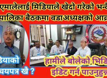 धरान: बुधबार बिहान धरान उपममहानगरपालिकाको कार्यपालिका बैठकमा नेकपा एमालेबाट निवार्चित वडा नं १० का वडाअध्यक्ष विवेक राईले मिडियाकर्मीहरुप्रति आक्रोश पोखेका छन् । बैठकको एजेण्डामा बोल्ने क्रममा उनले मिडियाले एमालेका वडाअध्यक्ष र पार्टीलाई खेदो गरिरहेको भन्दै आक्रोश पोखे । उनले आफु भर्खर पहिलो पट ...