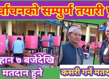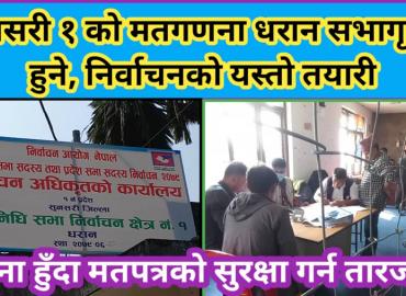 धरान: आइतबार मंसिर ४ गते प्रतिनिधिसभा र प्रदेशसभा निर्वाचनको सम्पुर्ण तयारी पुरा भएको छ । मतदानस्थलहरुमा आइतबार हुने निर्वाचनको सबै तयारी भइसकेको धरानस्थित सुनसरी क्षेत्र नं १ प्रतिनिधिसभा र प्रदेशसभा निर्वाचन अधिकृत रुद्र अर्यालले जानकारी दिए । उनका अनुसार सबै मतदानस्थलहरुमा मतदान अधिकृतसहितक ...