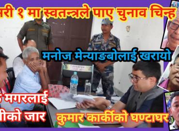 धरान: आगामी मंसिर ४ गतेको प्रतिनिधिसभा र प्रदेशसभा निर्वाचनको लागि स्वतन्त्र उम्मेद्वारी मनोनयन दर्ता गरेका उम्मेद्वारहरुलाई निर्वाचन आयोगले चुनाव चिह्न प्रदान गरेको छ । सुनसरी क्षेत्र नं १ का उम्मेद्वारहरुलाई पनि बुधबार धरान ८ स्थित सभागृहमा रहेको निर्वाचन अधिकृतको कार्यालयले चुनाव चिह्न प्रदान गरे ...