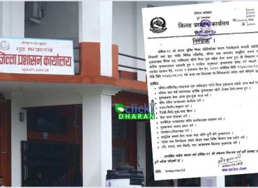 धरान: जिल्ला प्रशासन कार्यालय सुनसरीले मंसिर ६ गतेसम्मको लागि जिल्लाभर निषेधाज्ञा जारी गरेको छ । प्रशासनले सोमबारदेखि मंसिर ६ गतेसम्मको लागि निषेधाज्ञा जारी गरेको हो । प्रशासनले कोरोना संक्रमणको जोखि बढीरहेकोले यस्तो निषेधाज्ञा जारी गरेको हो । स्थानीय प्रशासन ऐन २०२८ र संक्रामक रोग ऐन २०२० वमोजिम न ...