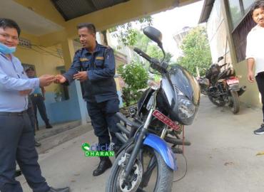 धरान: हिजो राती धरानबाट हराएको मोटरसाइकल फेला पारेर प्रहरीले सम्बन्धित व्यक्ति(धनी)लाई बुझाएको छ । ईलाका प्रहरी कार्यालय धरानका अनुसार हिजो राती करिब ८ बजे धरान १३ बाट को २९ प १२७ नम्बरको पल्सर मोटरसाइकल हराएको थियो । मोटरसाइकल धनी रवि राईले प्रहरीमा निवेदन दिएपछि खोजी गर्दा धरान १६ मा वेवारिस अवस् ...