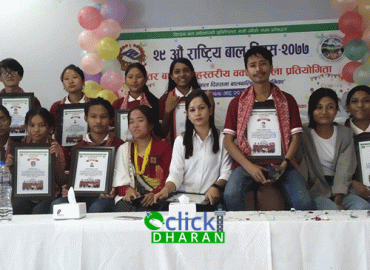 धरान: धरान उपमहानगरपालिका १५ नं. वडा समितिको आयोजनामा अन्तर बाल समूह स्तरिय वक्तृत्वकला प्रतियोगिताका सम्पन्न भएको छ । प्रतियोगिता २९ औं राष्ट्रिय बाल दिवसको अवसरमा वडा नं १५, बाल संजालको संयोजनमा आयोजना भएको हो । प्रतियोगितामा शिवगंगा बाल क्लबका मेनुका दर्जी प्रथम भइन् भने हिबिसकस बाल समूहका अनुप ...
