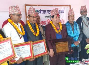 धरान: धरानका अग्रज पत्रकार गोपाल देवानसहित ४ जना पुरस्कृत भएका छन् ।नेपाल पत्रकार महासंघ सुनसरीले सोमबार इटहरीमा एक कार्यक्रम आयोजना गरि उनीहरुलाई पुरस्कारसहित सम्मान गरेको हो । पुरस्कृत हुनेमा धरानका अग्रज पत्रकार देवानसँगै सुविद गुरागाई, चेतन धमला र रश्मी प्रधान छन् । पत्रकार देवानलाई पत्रकार सालि ...