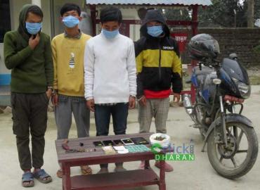 मोरङ: मोरङको पथरी शनिश्चरे ४ स्थित एक घरबाट लागुऔषध ब्राउनसुगर सहित चार जना पक्राउ परेका छन् । पक्राउ पर्नेमा स्थानीयका १९ बर्षीय साजन राई, २२ बर्षीय छिरीङ राई र २४ बर्षीय नवराज राई रहेका छन् । यस्तै, भोजपुर साल्पासिलोछो २ का १९ बर्षीय निराज राई रहेका छन् । घरमा लागुऔषध बिक्रीवितरण गरिरहेको भन्ने व ...